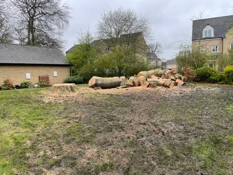 Regular woodland, and meadow maintenance in Newbold, Chesterfield, and removal of a diseased Beech tree in Halifax For Trinity Estates. (local resources at OBL grab wagon services were utilized)